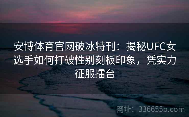 安博体育官网破冰特刊:揭秘UFC女选手如何打破性别刻板印象,凭实力征服擂台摘要: UFC(终极格斗冠军赛)作为全球顶级的综合格斗赛事,一直以来都以极高的竞技性和观赏性吸引着众多格斗爱好者。提到UFC,很多人首先会想到的是那些肌肉壮汉、极限打击的男子选手,女性选手...